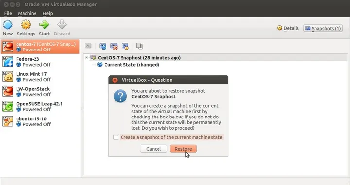 To restore, select the virtual machine, click on Snapshots then Restore Snapshot option.