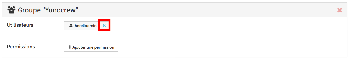 To delete a group, click on the red cross on the top right of the group panel. You will be asked for confirmation.