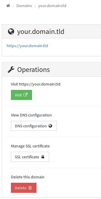 If your domain is correctly configured, it is then possible to install the Let's Encrypt certificate via the green button.
