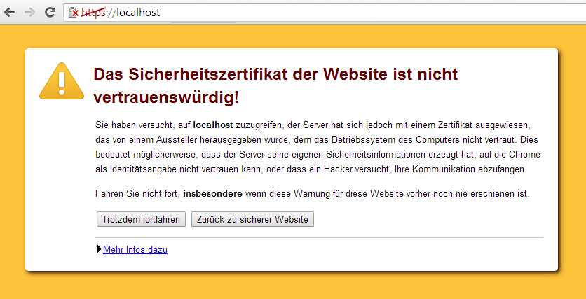 Was im Wesentlichen den Besucher fragt: "Vertrauen Sie dem Server, der diese Website hostet?". Dies kann viele Menschen selbstverständlich erschrecken.