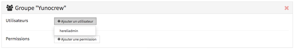 Pour supprimer un utilisateur, cliquez sur la croix à côté de son nom d'utilisateur, dans le panneau du groupe.