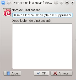 Avant de commencer à jouer avec la machine virtuelle, il convient de faire un premier instantané, pour ne pas avoir à recommencer le processus d'installation à chaque fois.