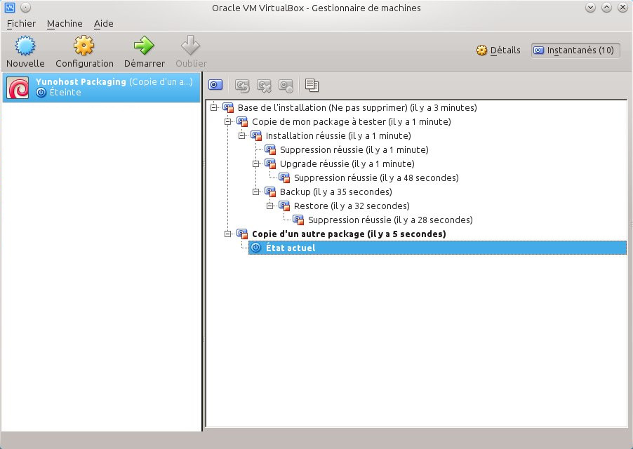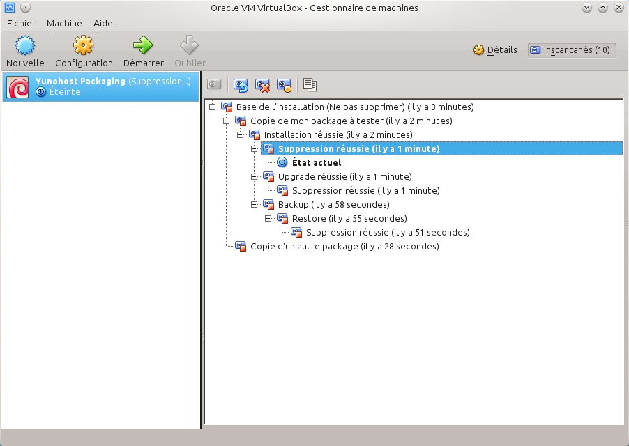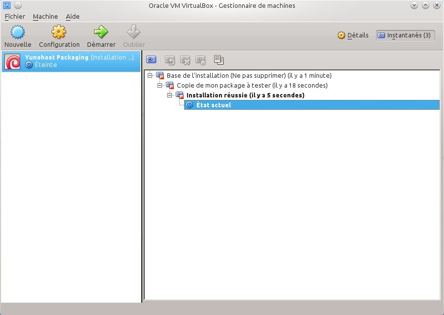 Et lorsque le package sera pleinement fonctionnel, il suffira de supprimer les instantanés liés à ce package pour revenir à l'état initial de la machine virtuelle.