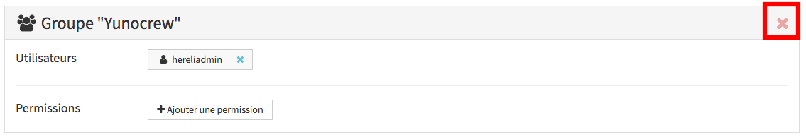 To delete a group, click on the red cross on the top right of the group panel. You will be asked for confirmation.